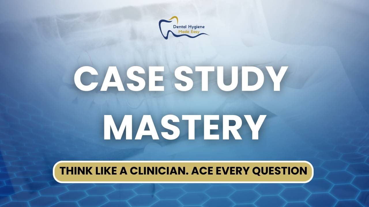 Take your Dental Hygiene Board Exam preparation to the next level with Case Study Mastery. This self-paced course walks you through five different client cases, giving you hands-on practice just like the real exam.